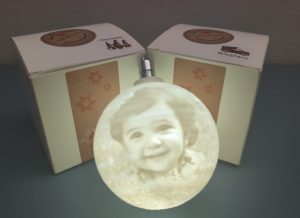 Bola de Navidad con luz totalmente personalizada lista para colgar en el